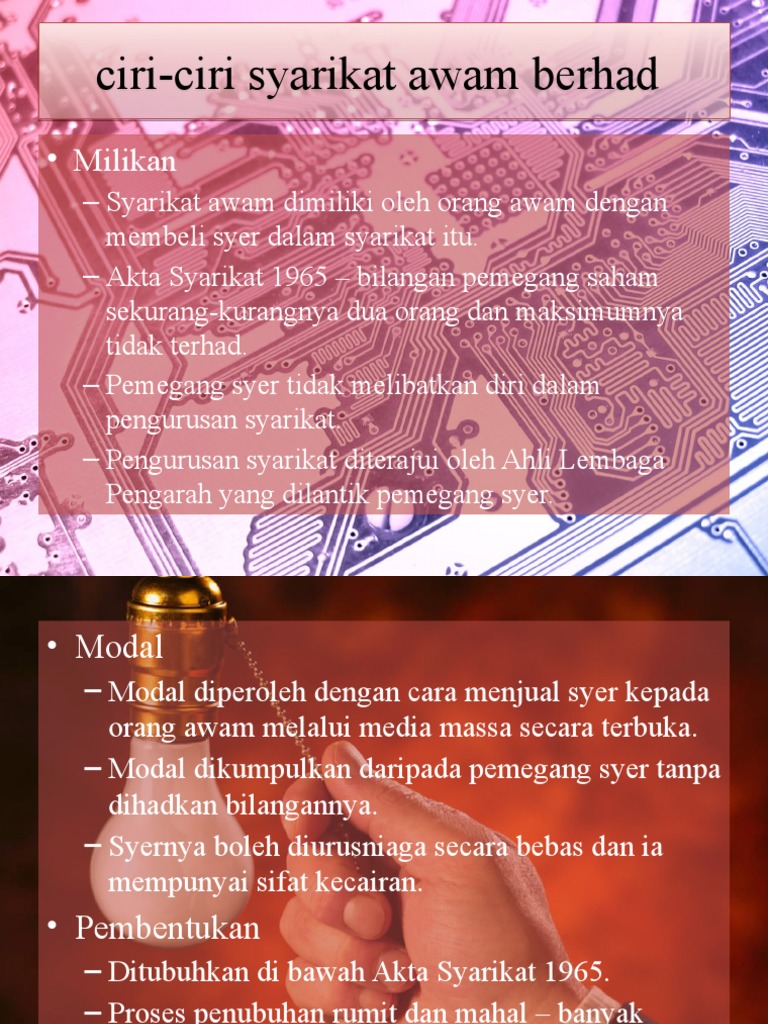 Ciri-ciri ini adalah seperti berikut. 1 Liabiliti perniagaan syarikat sdn bhd adalah terhad kepada sumbangan modal sahaja. Antara pernyataan berikut yang manakah bukan ciri-ciri syarikat awam berhad.